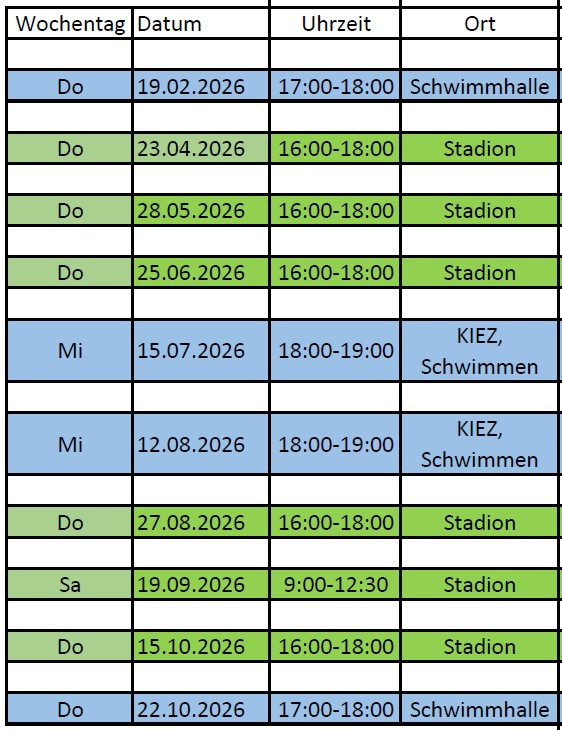 Hier die Orte und Termine für die Abnahme der Sportabzeichenprüfungen :